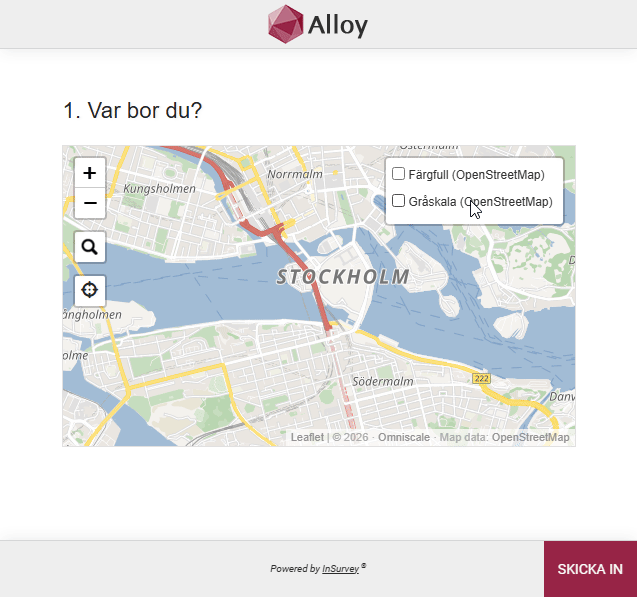 Detta innebär att kartan kan anpassas efter undersökningens syfte och det kontext som är relevant för just er undersökning. Respondenterna får tillgång till rätt geografiskt underlag när de markerar en plats, vilket minskar risken för feltolkningar och felmarkeringar. Sammantaget bidrar detta till högre datakvalitet och mer tillförlitliga geografiska underlag i analysen.