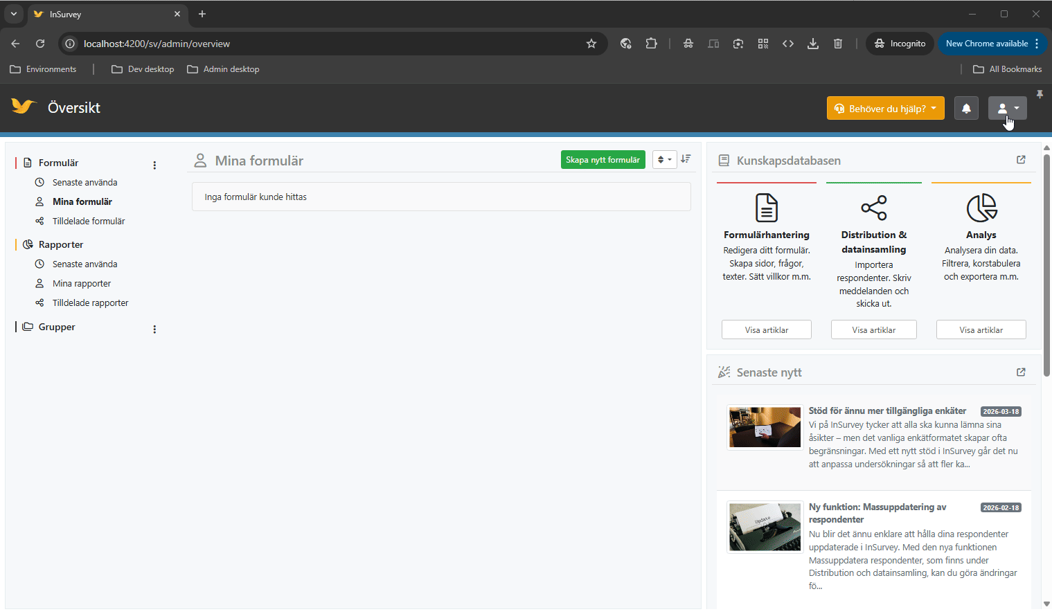 Vi rekommenderar att du redan nu lägger in ditt mobilnummer i InSurvey. Gå till Mina inställningar för att uppdatera dina uppgifter.