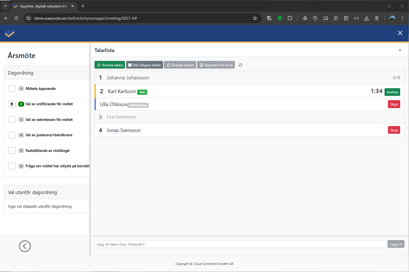 Då talarlistorna hanteras per dagordningspunkt blir det enklare för dig som administratör att separarera olika diskussioner åt.